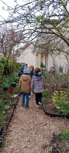 Première (et pas la dernière) visite scolaire du jardin de Carlos et Marie